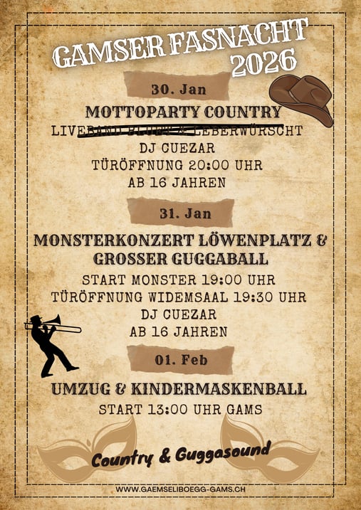 Seit 1973 beleben wir, die Gämselibögg Gams, nun die Fasnacht der Region und vertreten die Gamser Fasnachts-Hochburg im In- und Ausland. So gehören zu unseren Auftritten im gesamten St. Galler Rheintal unter anderem auch die Zentralschweiz sowie Östereich, Deutschland und Frankreich. Wir sind ungelernte Musiker, was man auch hören soll, und setzen auf Spass und Freude an der Tradition.